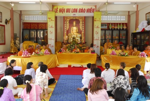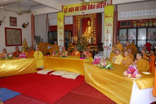Buổi lễ đã diễn ra trong không khí thật trang nghiêm và ấm cúng. Bắt đầu bằng thời pháp thoại “Ý nghĩa Lễ Vu Lan Báo Hiếu”, sau đó là lễ Bông Hồng Cài Áo, tụng kinh Vu Lan, và nhiều nghi thức mang âm hưởng nghi lễ truyền thống của Phật Giáo Việt nam.