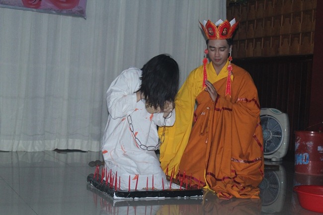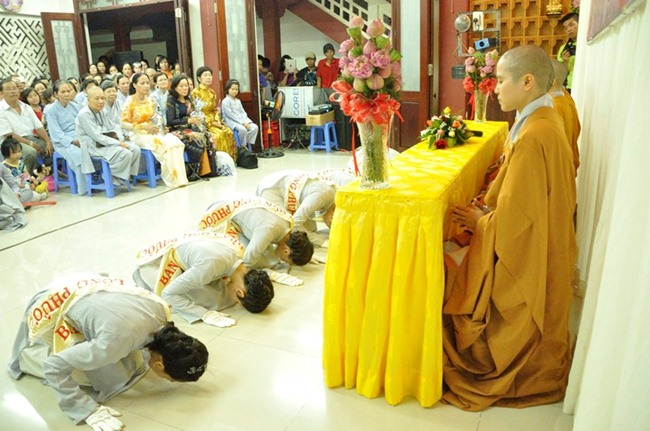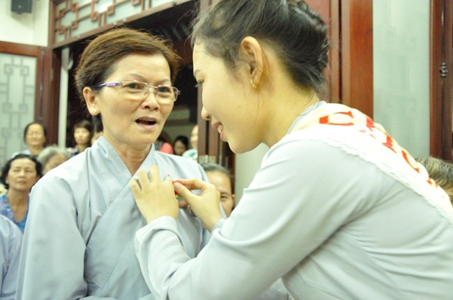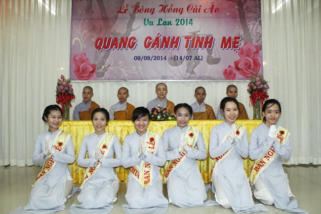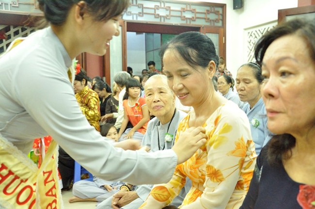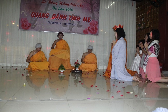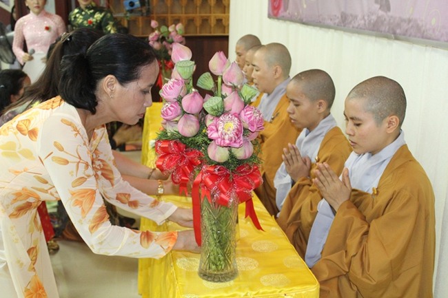 Buổi lễ đã diễn ra trong không khí vô cùng trang nghiêm và xúc động dưới sự chứng minh của Ni Sư Thích Nữ Huệ Dâng, quý Ni chùa Long Phước. Sau phần nghi lễ dâng hoa, cả đạo tràng đã lắng đọng trước những lời cảm niệm về công đức sinh thành dưỡng dục của cha mẹ, bổn phận làm con trước những Ân Đức cao hơn trời bể của cha mẹ mình.