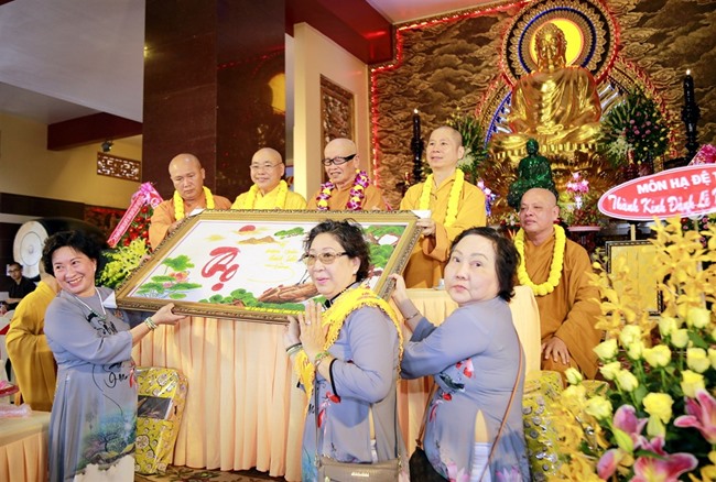 Buổi lễ có sự tham dự và chứng minh của: HT Thích Như Tước, UV HĐTS, Trưởng BTS GHPGVN tỉnh Vĩnh Long; HT. Thích Thiện Thanh và HT. Thích Phước Tú – Chứng minh BTS GHPGVN tỉnh Vĩnh Long; HT Thich Viên Giác, UV BHP T.Ư GHPGVN ; TT Thích Chân Quang – Phó trưởng ban Kinh tế Tài chánh T.Ư GHPGVN; TT. Thích Phước Hạnh, Phó Trưởng ban Thường trực BTS GHPGVN tỉnh Vĩnh Long; cùng toàn thể Chư tôn đức Tăng Ni là Trưởng/phó các Ban, Viện trong BTS GHPGVN tỉnh Vĩnh Long; Chư tôn đức trong tông môn chùa Phật Ngọc Xá Lợi; Chư tôn đức Tăng Ni Thiền Tôn Phật Quang. Ngoài ra còn có sự tham dự của 1600 người, bao gồm phật tử tại Bổn tự, phật tử các tỉnh thành, quý Công ty, Doanh nghiệp, Doanh nhân tại TP HCM.