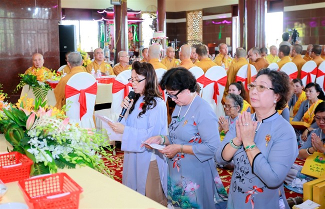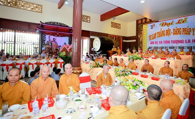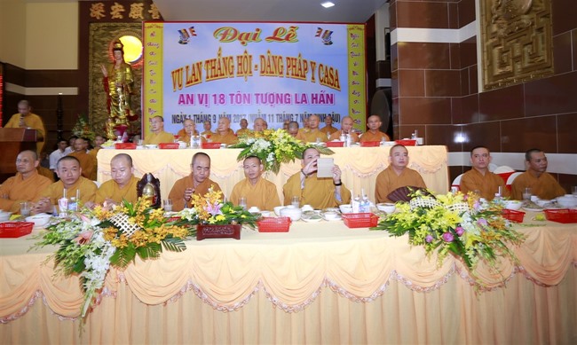 Nội dung chương trình đại Lễ, bao gồm các nghi thức Phật giáo như: thuyết Pháp, lễ khánh tuế và tri ân thầy tổ nhân mùa Vu Lan, nghi thức cúng dường trai tăng, cúng dường dâng Y Casa, v.v… Tất cả diễn ra một cách trang nghiêm thành kính, đã mang lại nhiều cảm xúc trong dòng chảy tâm linh, hướng lòng tri ân và báo ân đối với các bậc Thầy tổ, cha mẹ hiện tiền, phụ mẫu quá vãng, cùng các bậc tiền bối hữu công, anh linh chiến sĩ đã vị quốc vong thân, đồng bào phật tử đã gian khổ cống hiến trọn đời cho dân tộc và đạo pháp.