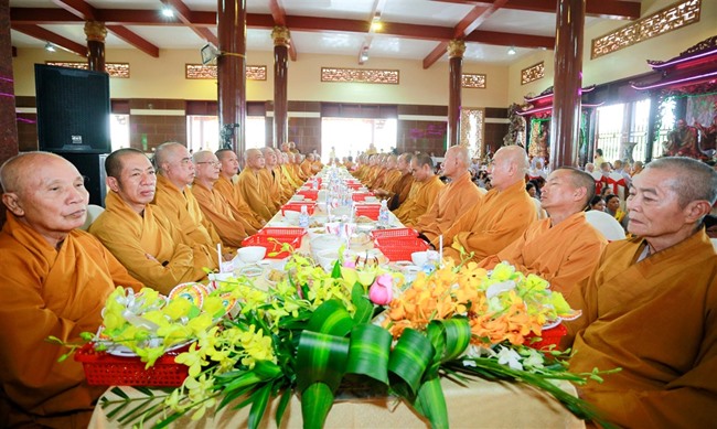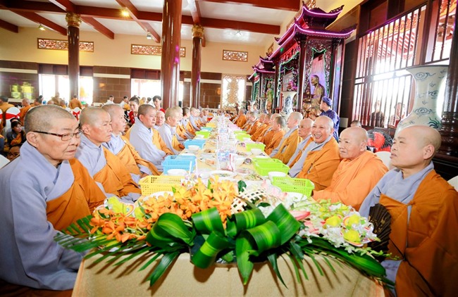 Sau đó, tại trai đường đã diễn ra lễ dâng Pháp y và cúng dường Trai tăng sau ba tháng an cư.
