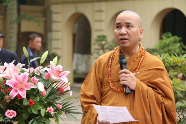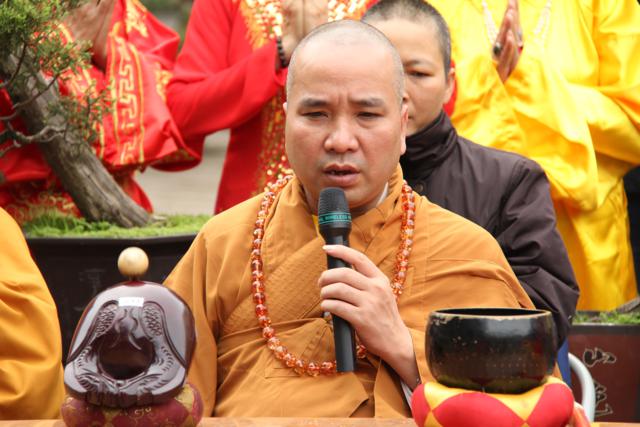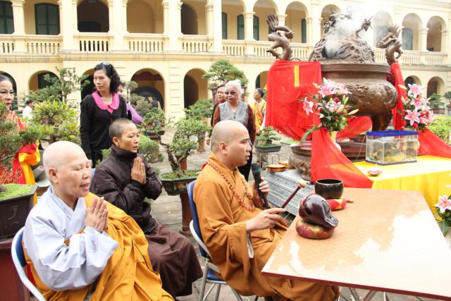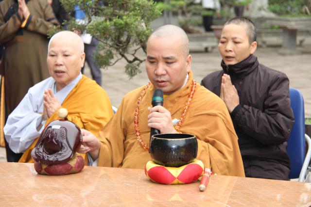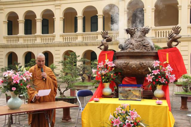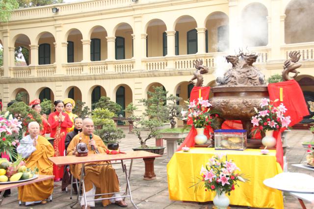 Tại buổi lễ ĐĐ Thích Thanh Cường cùng Chư Ni và toàn thể hội chúng làm lễ trì niệm yên vị đỉnh đồng dâng điện Kính Thiên tại Hoàng Thành Thăng Long.