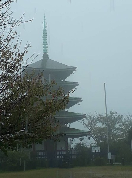 Lên núi Kanuki thăm tháp và gặp mưa. Thế là chúng tôi có cơ hội học Phật với bác người Nhật ở đây. Tôi có mấy học trò giỏi tiếng Nhật nên dịch giúp tôi để giao tiếp. Bác không biết tiếng Anh, tiếng Pháp hay tiếng gì ngoài tiếng Nhật nên mấy cô cậu học trò là vị cứu tinh cho chương trình học Phật trên núi của tôi.