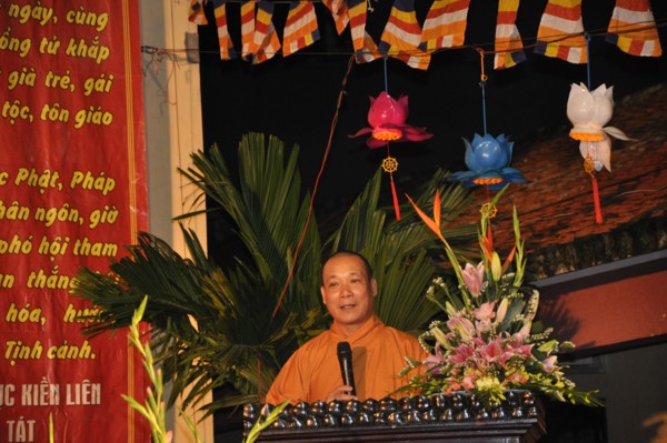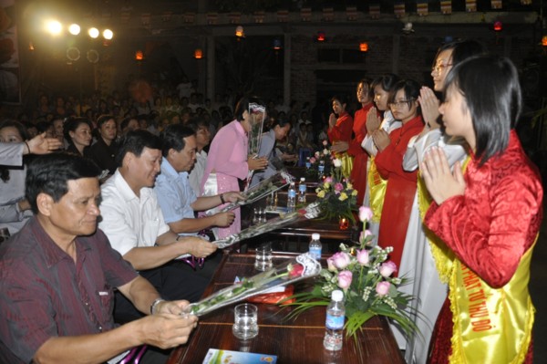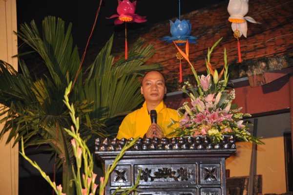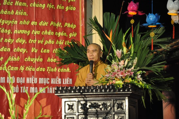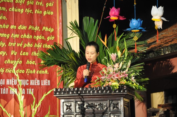 Phát biểu khai mạc buổi lễ, Đại đức Thích Chiếu Tuệ nói về tấm lòng hiếu kính cha mẹ, ân sư của người con Phật mỗi mùa Vu lan về. Đây là dịp để ôn lại công lao sinh thành, dưỡng dục bao la như trời biển của cha mẹ, nhắc nhở mỗi người con Phật phải biết noi gương hiếu hạnh của Bồ tát Mục Kiền Liên.