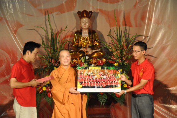 Đại diện Liên đoàn cũng thành kính dâng tặng bức ảnh chụp các thành viên Liên đoàn tại Đại lễ Phật giáo kỷ niệm 1000 năm Thăng Long – Hà Nội lên TT. Thích Bảo Nghiêm.