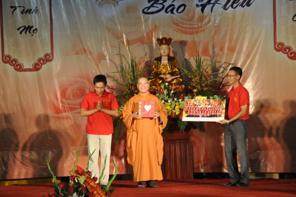 Đại diện Liên đoàn dâng tặng bức hình chụp thanh thiếu niên Phật tử tình nguyện tại Đại lễ Phật giáo kỷ niệm 1000 năm Thăng Long – Hà Nội