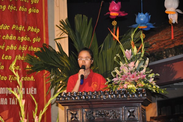 Đại diện đến từ Câu lạc bộ Lý Triều Quốc Sư đã phát biểu cảm tưởng khi tham gia sinh hoạt thanh thiếu niên Phật tử, bày tỏ lòng biết ơn chư Tôn đức đã tạo thuận duyên và giúp đỡ các bạn trẻ có một sân chơi, sân tu tập bổ ích, thiết thực và ý nghĩa.