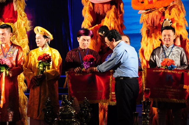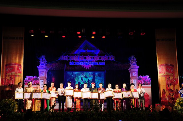 Kết thúc chương trình, các nghệ nhân đã được nhận quà, hoa và bằng khen từ Ban tổ chức liên hoan nghệ thuật hát văn và hát chầu văn Hải Phòng mở rộng năm 2015.