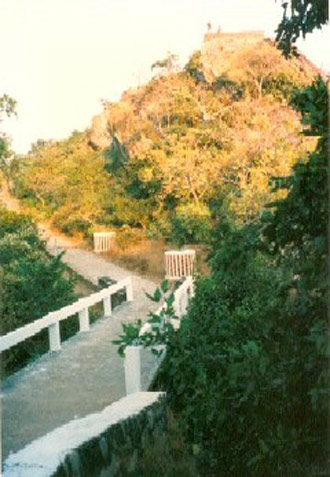 Trước khi đến Linh Thứu, xe chúng tôi ngang qua kinh thành Vương Xá cổ xưa của nước Ma Kiệt Đà. Ngày ấy Vương Xá phồn vinh, tươi đẹp là thế mà nay hoang phế, tịnh không bóng người. Dưới chân núi, đám hàng rong bu quanh du khách. Quán xá nhếch nhác, hôi hám và ruồi. Đoạn đường từ chân núi đến đỉnh khoảng 2 km dốc thoai thoải, người ta vừa chỉnh trang bằng các bậc cấp tráng xi măng – không sao tìm lại dấu chân đức Phật từng đi qua.