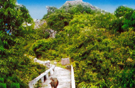 Qua khỏi “Linh Sơn kiều” – chiếc cầu bắc qua con suối nhỏ, là địa phận đỉnh Linh Thứu; nhiều những đống đá chất chồng lên nhau, một cách cầu nguyện của các tín đồ Tây Tạng. Đỉnh Linh Thứu là một khuôn viên hình chữ nhật khoảng 10 x 20 m, bên ngoài là vòng thành ba mặt cao không quá 0,80 m, bên trong thêm một vòng thành vuông, ở giữa có tượng Phật nhỏ tí và đủ thứ cờ hoa trông màu mè đồng bóng, một bát hương to và thô như cái xô của mấy ông thợ hồ.