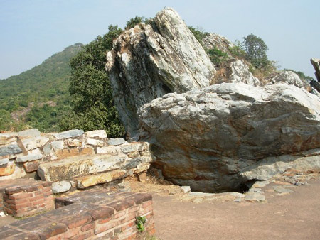 Thuở xưa hẳn Linh Thứu cây cao bóng cả, uy linh diệu vợi, nay chỉ như một ngọn đồi xơ xác cỏ cây. Dọc bên đường vẫn còn vài dấu tích lịch sử: Tảng đá Đề Bà Đạt Đa quyết lăn hãm hại đức Phật, nơi nhà vua Tần Bà Xa La xuống xe đi bộ, nơi nhà vua cho đoàn tuỳ tùng lui, chỉ một mình lên thăm đức Phật.