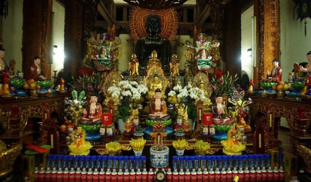 | Khu vực đặt tượng Phật A Di Đà trong chùa Ngũ Xã. |