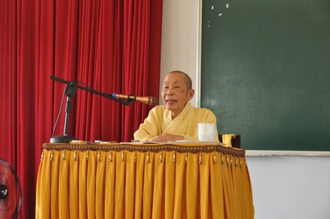 Hòa thượng nói về chủ đề “nhân quả của sự đầy đủ”. Phàm làm người, ai ai cũng có sự thụ hưởng tối thiểu. Sự thọ hưởng ấy tùy thuộc phúc báo của mỗi người, gọi theo là Chánh báo và Y báo trang nghiêm. Có 10 sự đầy đủ: (1) đầy đủ về thọ mạng, (2) đầy đủ hảo tướng, (3) đầy đủ về quyến thuộc bạn bè, (4) đầy đủ về phương tiện thụ hưởng, thọ dụng, (5) đầy đủ về giới, (6) đầy đủ về định, (7) đầy đủ về tuệ, (8) đầy đủ về sự học rộng, nghe nhiều, (9) đầy đủ về ước nguyện, (10) đầy đủ về sự an vui.