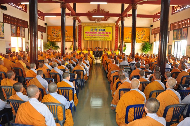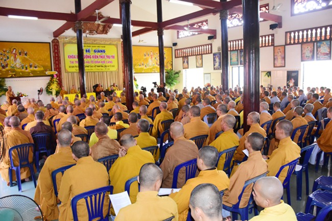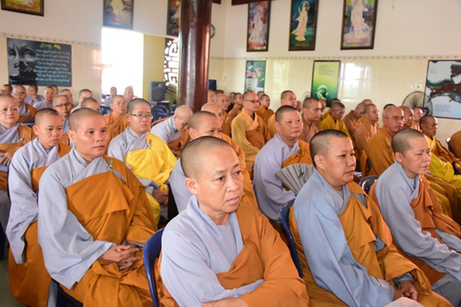 ĐĐ. Thích Lệ Trí – UV DK HĐTS, chánh thư ký BTS kiêm trưởng ban hoằng pháp BTS GHPGVN tỉnh LA, thông qua báo cáo của khóa. Khóa học có 15 thời thuyết giảng của chư tôn đức giảng sư trong Thường trực HĐTS, các ban viện TW, Thường trực BTS GHPGVN tỉnh LA; 01 buổi thuyết trình của ban tôn giáo tỉnh LA; 02 buổi tọa đàm giao lưu. Tổng thu 91.200.000đ, tổng chi 191.000.000đ.