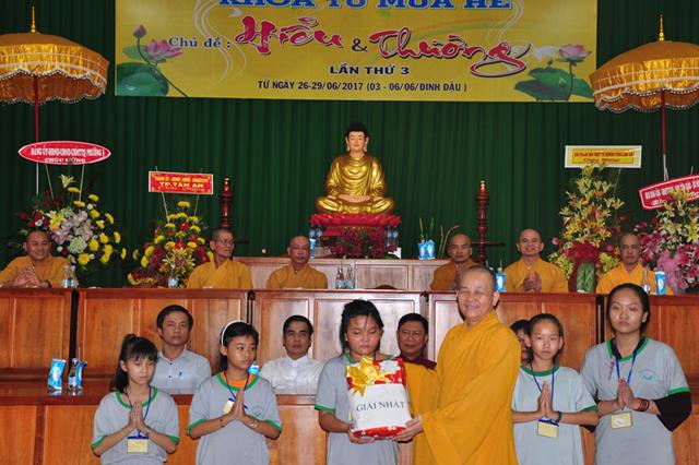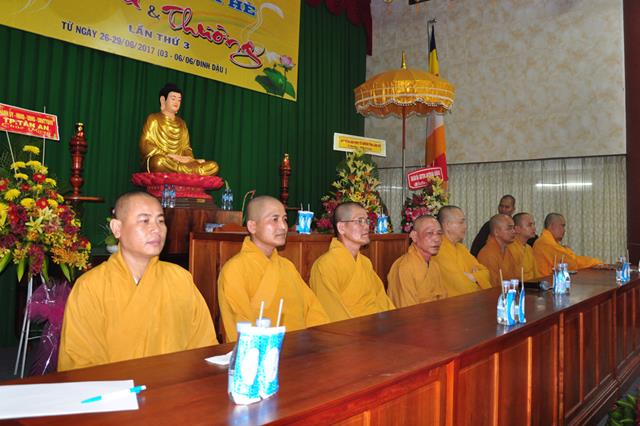 Tại buổi lễ sau nghi thức niệm Phật cầu gia hộ, tuyên bố lý do, giới thiệu thành tham dự. ĐĐ. Thích Huệ Chơn thay mặt ban tổ chức báo cáo kết quả khoá tu.Theo báo cáo Khóa tu mùa hè năm 2017 dành cho Thanh thiếu niên Phật tử trong thời gian tu học 4 ngày, kể từ ngày 26 đến ngày 29/6/2017 (nhằm ngày 03 đến 06/6/Đinh dậu). Chủ đề của Khóa tu mùa hè lần 3 năm 2017 là “Hiểu và Thương”, với mục đích đưa đạo Phật đến gần hơn với thế hệ Thanh thiếu niên giúp các em tiếp cận giáo lý của đạo Phật; hiểu rõ truyền thống Văn hóa – Dân tộc; nuôi dưỡng tâm Từ bi – Hỷ xã; hiếu kính với ông bà cha mẹ. .v.v.. Đồng thời, tạo điều kiện cho các em được giao lưu, chia sẻ, tiếp cận kỹ năng sống nhằm hoàn thiện bản thân.