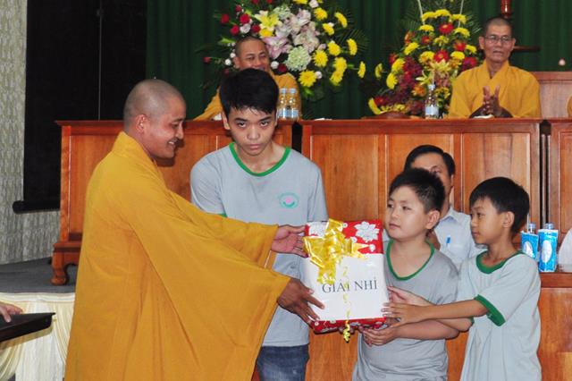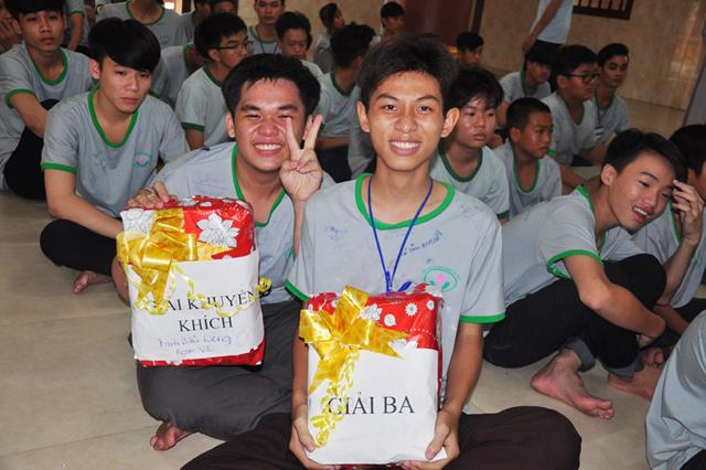 Ban tổ chức đã chọn 03 bài viết tiêu biểu về cảm tưởng khóa tu để cấp phát 03 phần thưởng cho các em và 06 chúng đạt được tổng số điểm cao nhất trong 5 trò chơi nhỏ gồm có (học Phật pháp; học oai nghi; học pháp khí; học văn nghệ và các tiểu trò chơi).