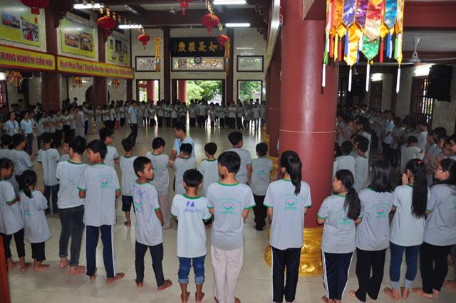 Ban tổ chức đã tạo điều kiện sinh hoạt tu tập và vui chơi cho các em theo đúng bảng chương trình, kế hoạch  các em được Kinh hành niệm Phật, Học giáo lý (đố vui giáo lý), Học kỷ năng sống (nghệ thuật ứng xử), Giao lưu đố vui, văn nghệ gameshow tìm kiếm tài năng