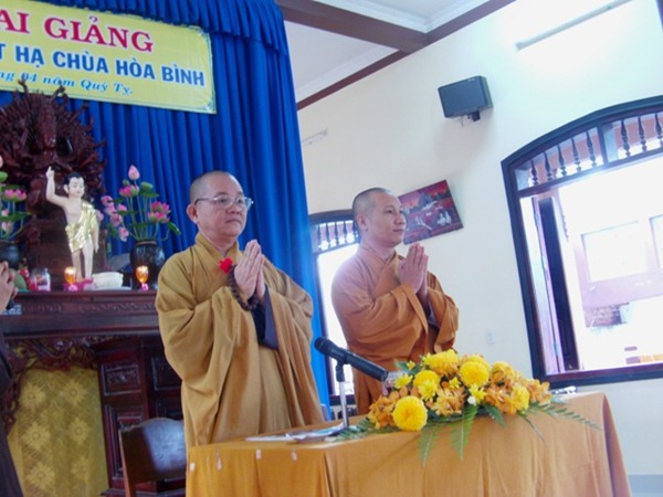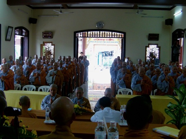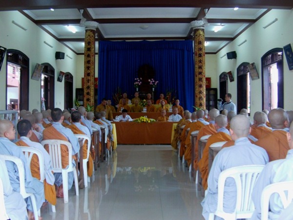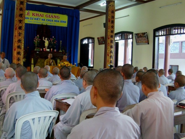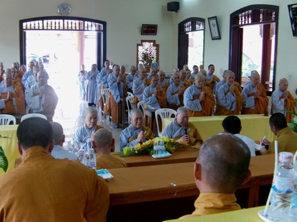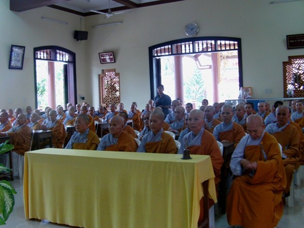 Tại buổi thăm, thay mặt Ban chức sự- Ni sư TN. Như Hương (Quản chúng hạ trường) đã trình lên Chư Tôn Đức quá trình an cư của ni chúng tại hạ trường trong hơn hai tháng qua. Sau khi nghe báo cáo, HT Thích Minh Thiện cũng ngợi khen, đồng thời cũng sách tấn những hành giả an cư, luôn luôn trau dồi giới đức. Cuối cùng, Ni sư Hóa chủ hạ trường đại diện trường hạ nhận món quà từ đại diện BTS GHPG VN tỉnh trao tặng. Được biết, trong tuần rồi HT Trưởng Ban Trị sự cũng đã đến hạ trường giảng cho chư Ni một thời pháp ngắn.