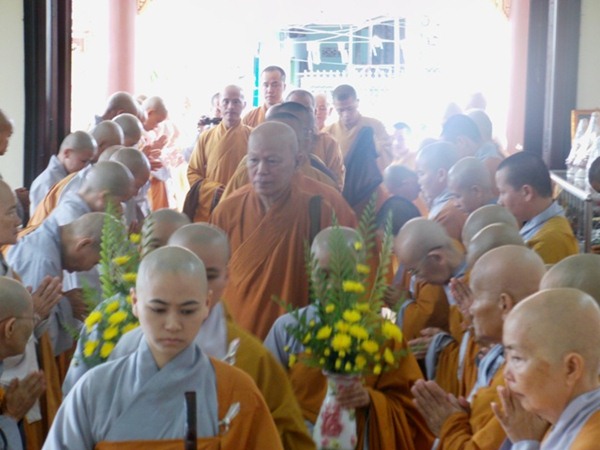 Cung đón phái đoàn có Ni sư TN. Tắc Hạnh- Hóa chủ hạ trường, Ban chức sự nội thiền cùng 107 hành giả đang an cư tại trụ xứ.