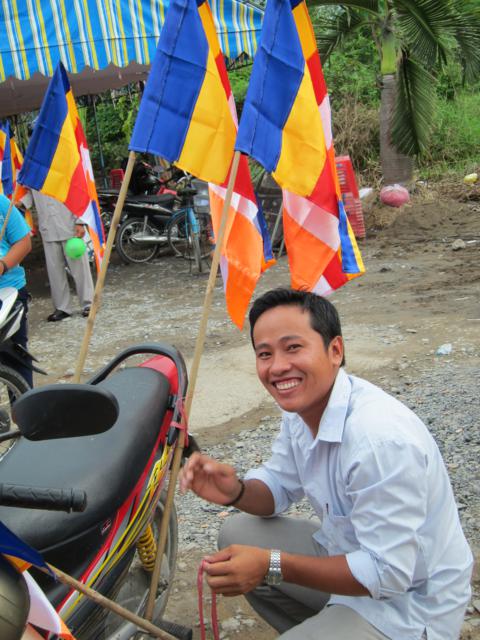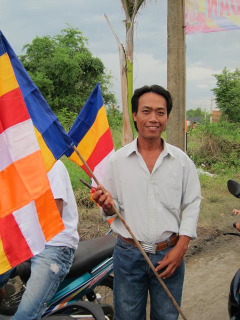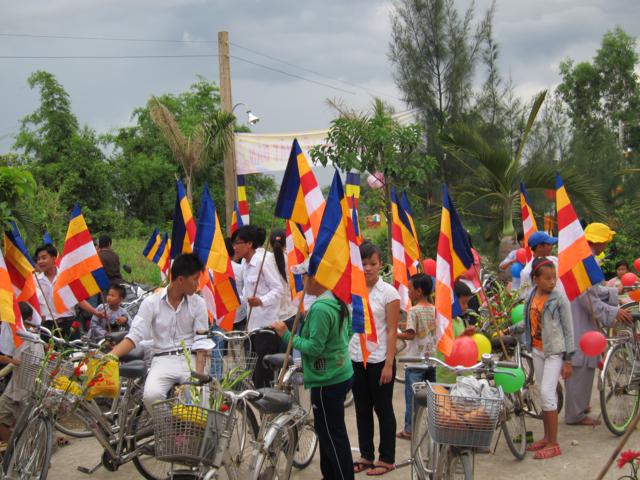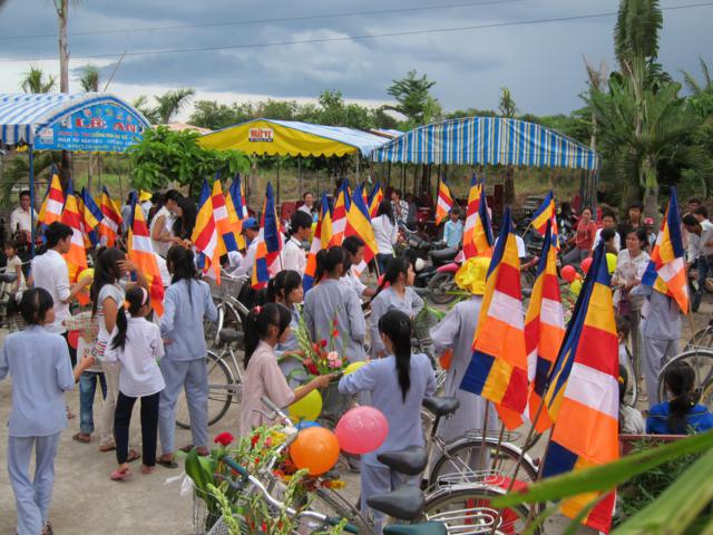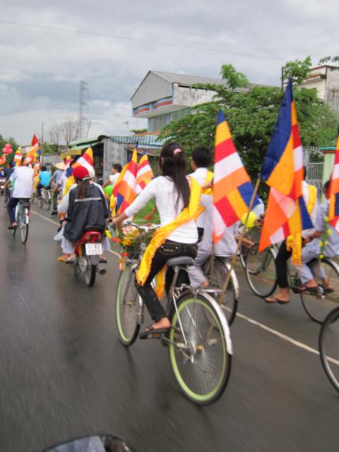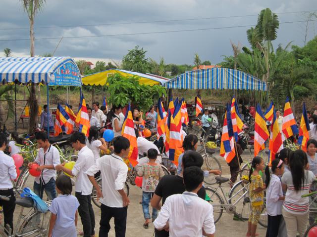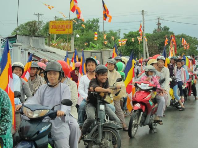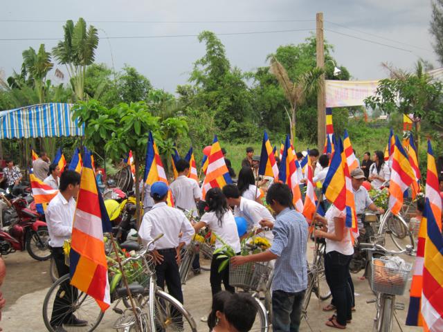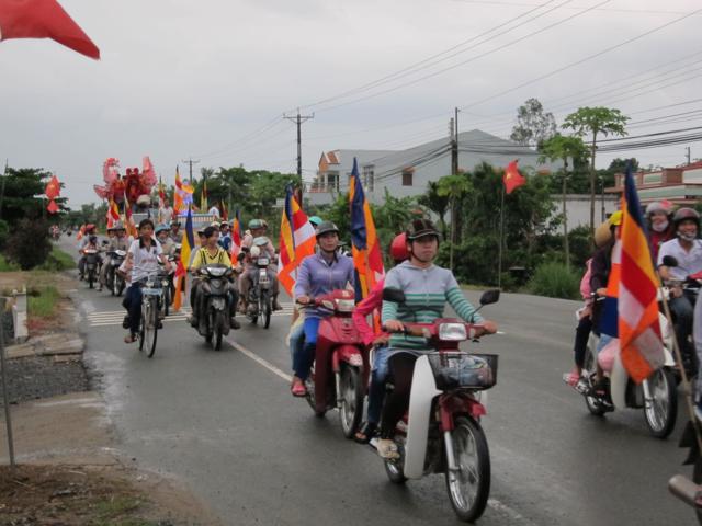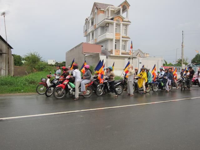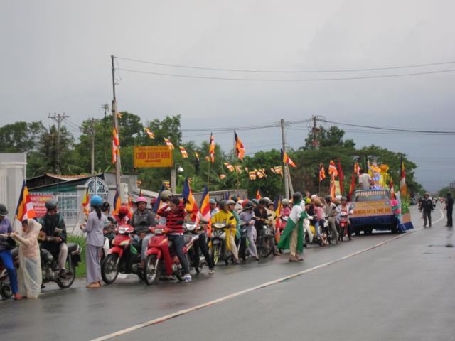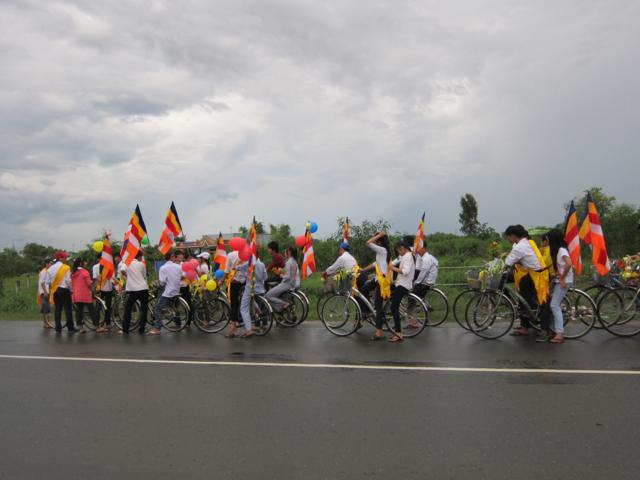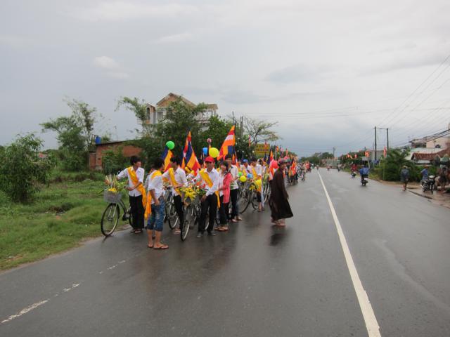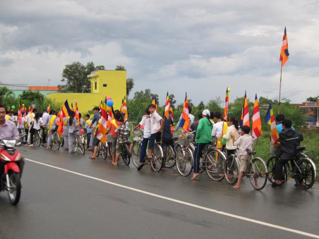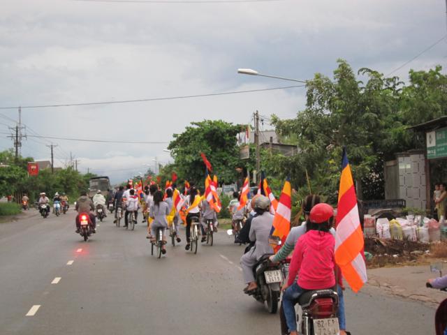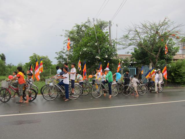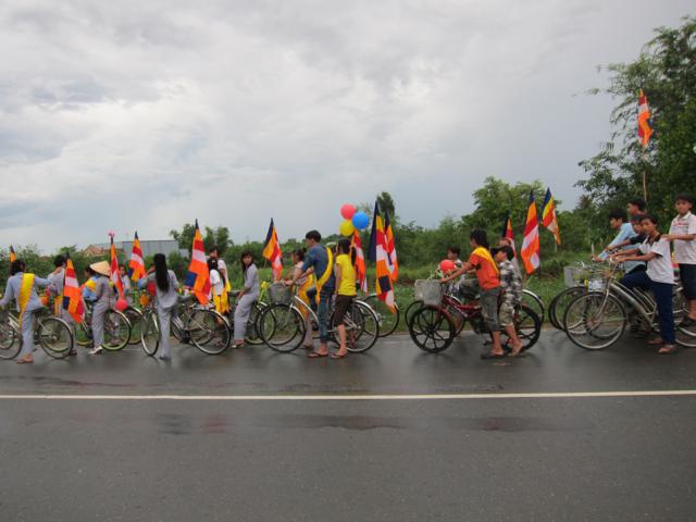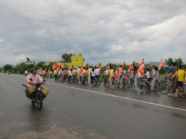 Có khoảng 70 em Thanh niên tuần hành bằng xe đạp và sự tháp tùng của quý Phật tử tại Chùa Khánh Ninh, ấp Phước Hưng 1, Xã Phước Lâm, Huyện Cần Giuộc, Tỉnh Long An. Mọi việc đã chuẩn bị hoàn tất cho chuyến diễu hành vui nhộn, háo hức và không kém phần trang nghiêm. Thế nhưng, mưa tháng tư mưa buồn như nỗi nhớ. Chẳng biết ở đâu, mây đen kéo đến che kín cả bầu trời Cần Giuộc. Những cơn gió mạnh bất ngờ ập đến. Cờ ngũ sắc dọc hai bên đường bị gió cuốn, các băng rôn, biểu ngữ bị đổ ngã,… Mưa kéo dài dường như thách thức.
