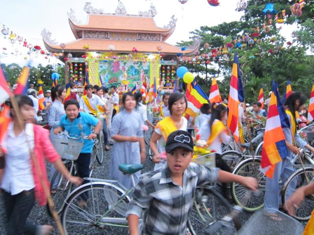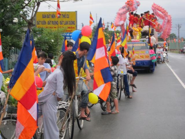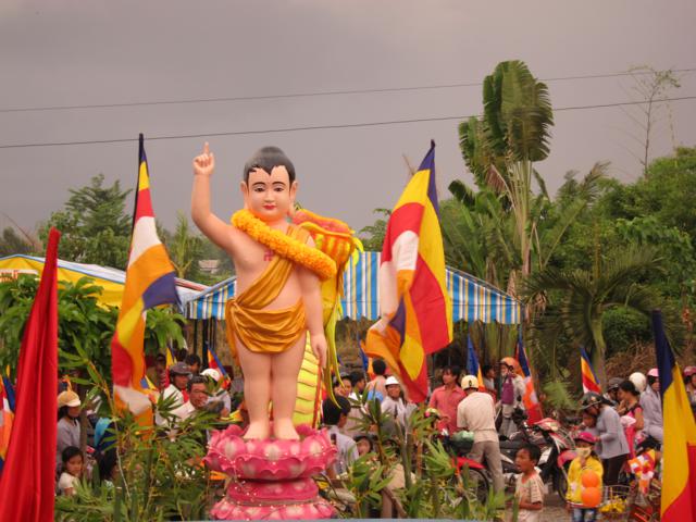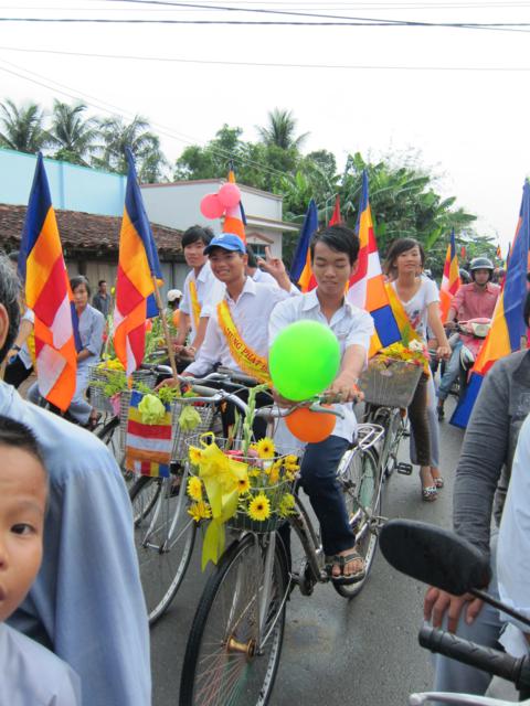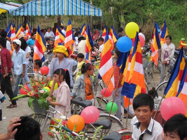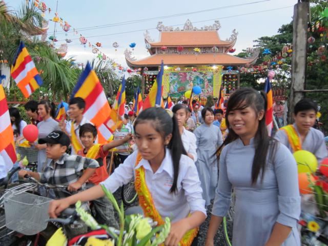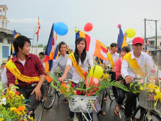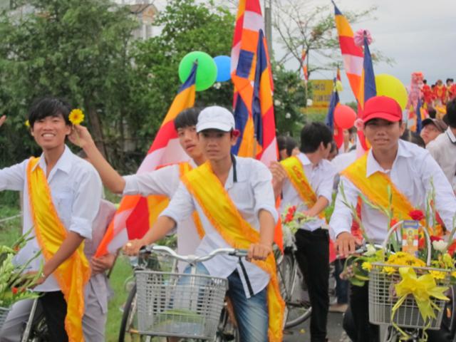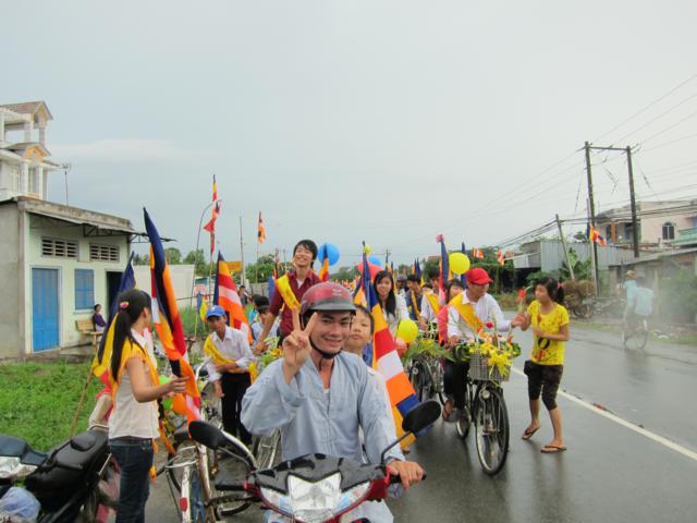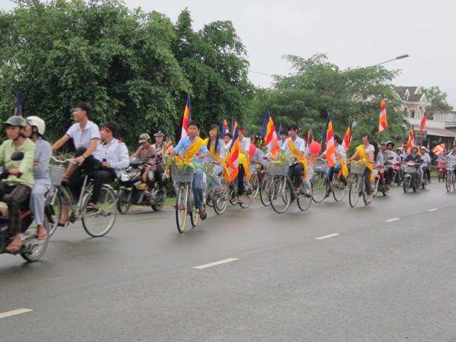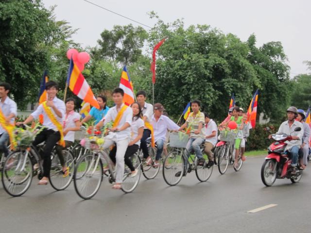 Tháng 4 lại về, phượng vĩ, bằng lăng đã nở những nụ hoa đầu mùa, báo hiệu tháng Vesaka lại về với tất cả những người con phật. Người người, ai ai cũng nôn nao, trông đợi, đón mừng ngày Đản Sinh của vị cha lành kính yêu. Mỗi người một cách làm khác nhau để thể hiện lòng tôn kính của mình. Có người về chùa dự lễ tắm Phật, người thiết kế lễ đài tại nhà, các em nhỏ tham dự cuộc thi vẽ tranh Phật, các em thanh niên lại háo hức đón mừng lễ Phật đản bằng cách chuẩn bị diễu hành đường phố bằng xe đạp với đoạn đường dài 28 km.