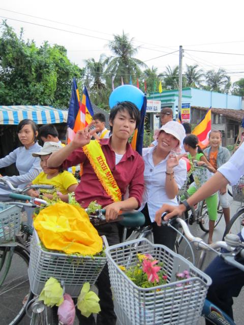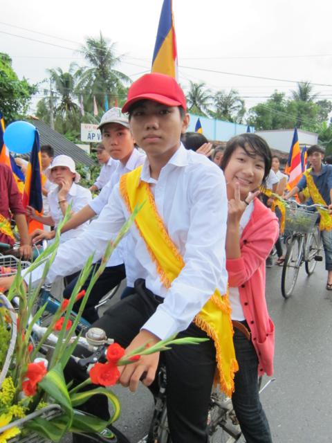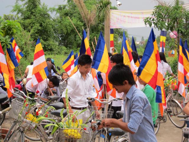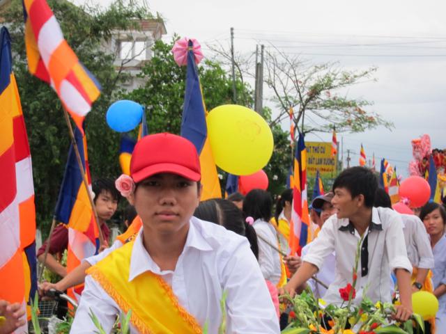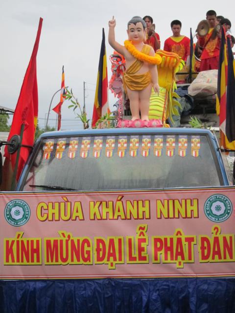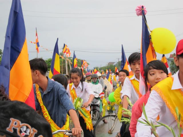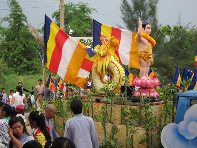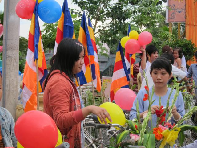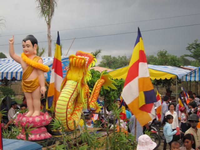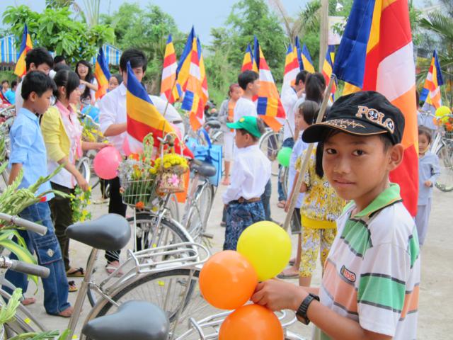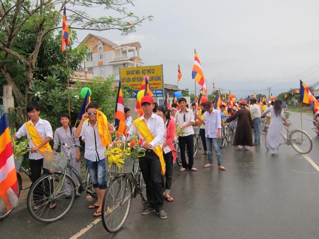 Tháng 4 lại về, phượng vĩ, bằng lăng đã nở những nụ hoa đầu mùa, báo hiệu tháng Vesaka lại về với tất cả những người con phật. Người người, ai ai cũng nôn nao, trông đợi, đón mừng ngày Đản Sinh của vị cha lành kính yêu. Mỗi người một cách làm khác nhau để thể hiện lòng tôn kính của mình. Có người về chùa dự lễ tắm Phật, người thiết kế lễ đài tại nhà, các em nhỏ tham dự cuộc thi vẽ tranh Phật, các em thanh niên lại háo hức đón mừng lễ Phật đản bằng cách chuẩn bị diễu hành đường phố bằng xe đạp với đoạn đường dài 28 km.