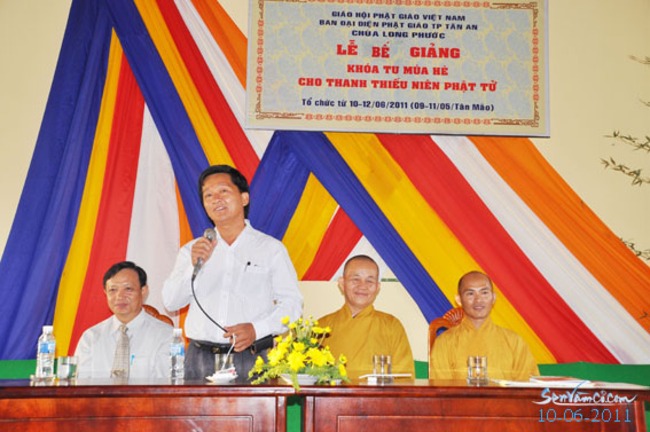 Chứng minh và tham dự có Thượng tọa Thích Thiện Huệ (Phó Ban Trị Sự Tỉnh Hội Phật Giáo Long An, Chánh Đại Diện Phật Giáo TP Tân An, Long An), Đại đức Thích Đức Hoàng Trưởng Ban Hướng Dẫn Phật Tử Tỉnh Hội Phật Giáo Long An), Đại đức Thích Lệ Trí (Trưởng Ban Văn Hóa Tỉnh Hội Phật Giáo Long An, Phó Ban Đại Diện Phật Giáo TP Tân An, trụ trì Chùa Long Phước).