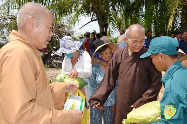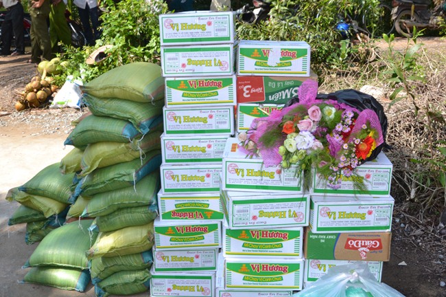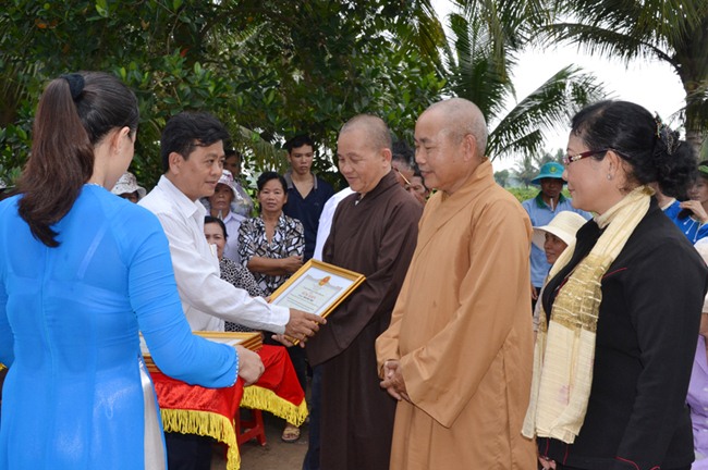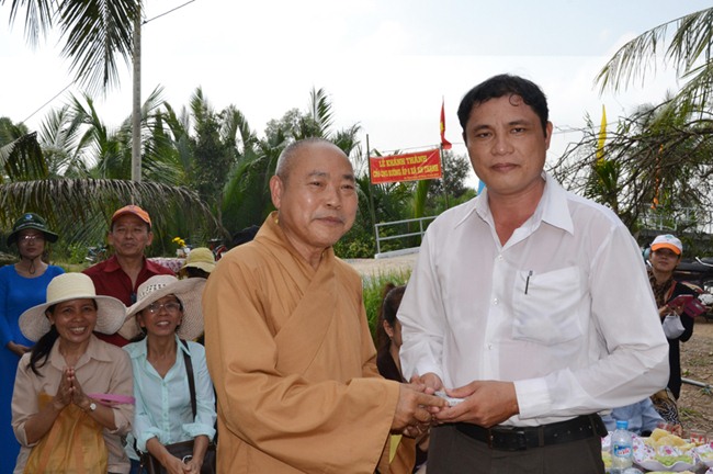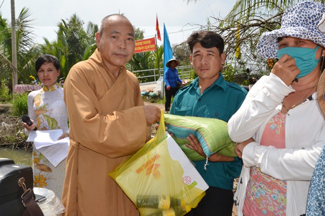 Vui mừng trong ngày lễ động thổ và khánh thành đoàn Từ thiện Chùa từ Tân đã trao tặng 100 phần quà cho các gia đình nghèo, khó khăn, gia đình chính sách trên địa 2 ấp, mỗi phần quà trị giá 300 ngàn đồng.