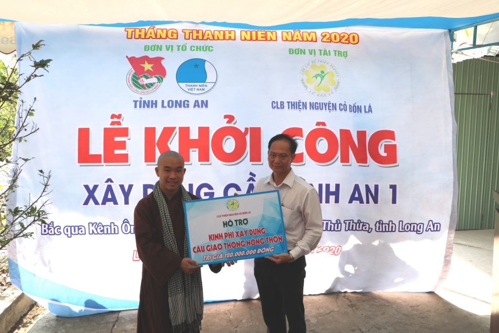 Sáng ngày 01/03/2020, CLB Thiện nguyện Cỏ Bốn Lá phối hợp với Tỉnh đoàn Long An tổ chức Lễ khởi công xây dựng cầu giao thông nông thôn bắc qua Kênh Ông Cả thuộc địa phận ấp 1, xã Long Thạnh, huyện Thủ Thừa, tỉnh Long An.