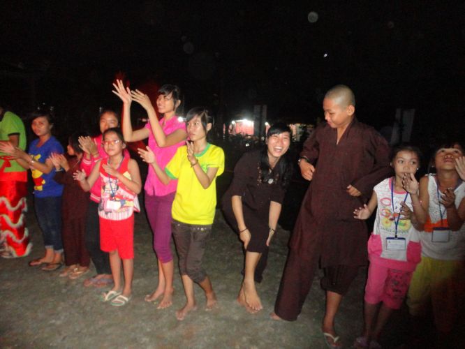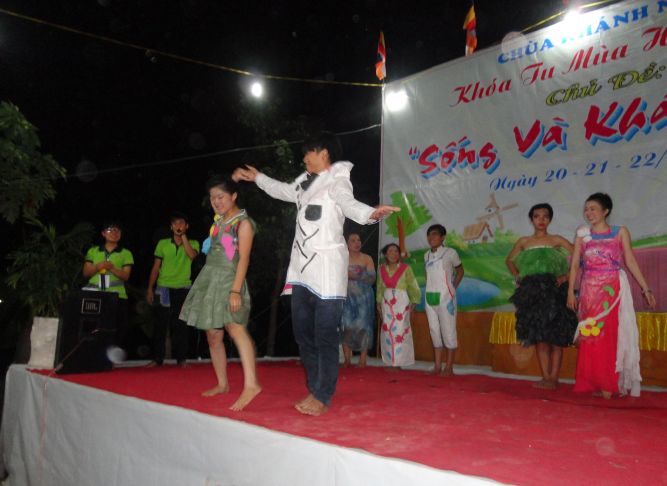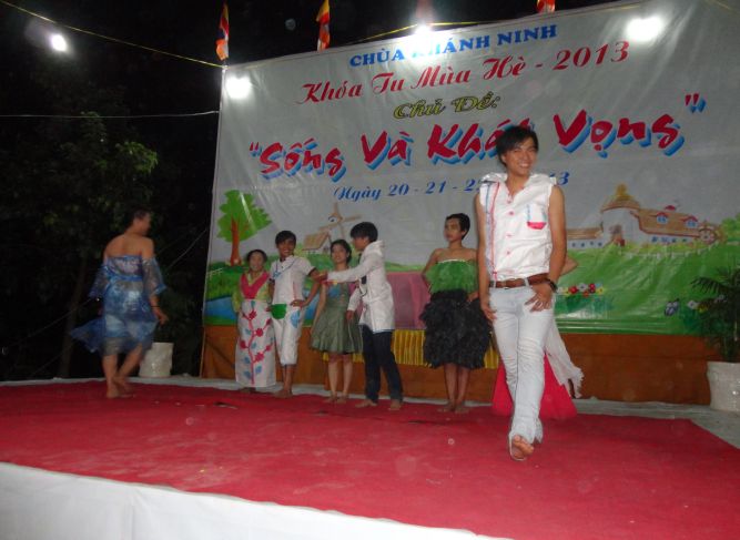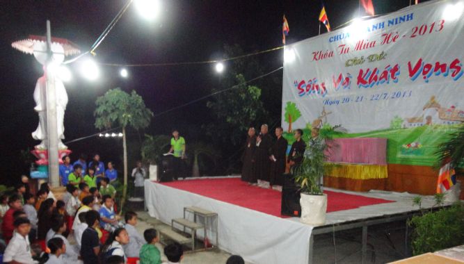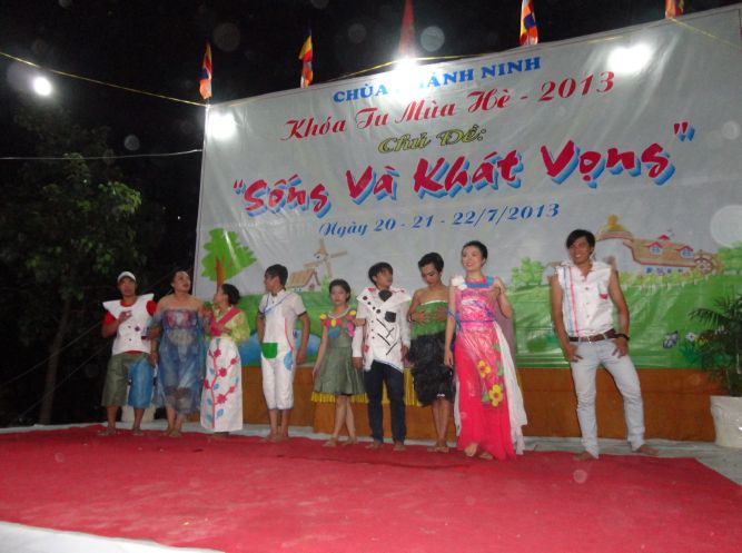 Đêm 21/7/2013, dưới bầu trời dịu mát của ngôi chùa Khánh Ninh thân thương, hơn 200 ban trẻ tại khóa tu mùa hè “Sống và Khát Vọng” đã dâng tặng lên quý thầy cô trong BTC, chư bằng hữu của mình một đêm văn nghệ, thời trang, lửa trại thật hoành tráng, ấn tượng.