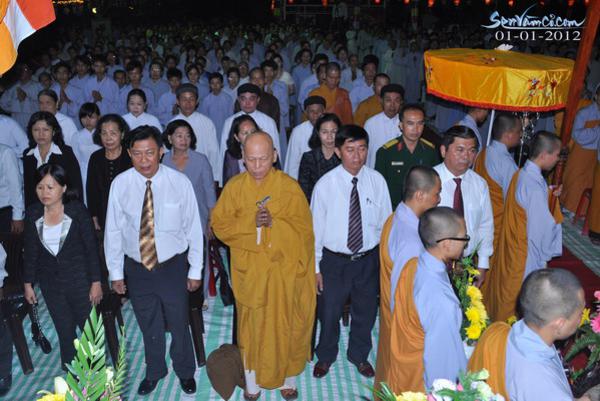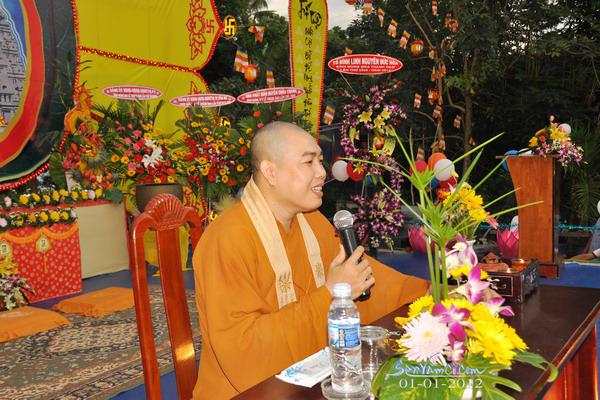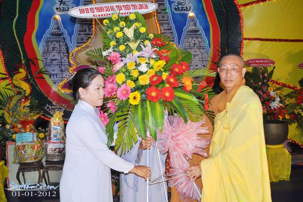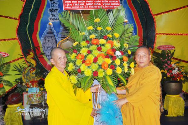 Chứng minh và tham dự có Hòa thượng Thích Thiện Thanh (UV HĐTS TƯ GHPGVN, Trưởng BTS THPG Long An), thượng tọa Thích Minh Thiện T(UV HĐTS TƯ GHPGVN, Phó TT BTS THPG Long An), thượng tọa Thích Thiện Huệ (Phó BTS THPG Long An, Chánh Đại diện Phật Giáo TP Tân An, Long An, Trưởng Ban Tổ Chức Đại lễ Thành Đạo); đại diện chính quyền có ông Dương Quốc Xuân (Phó Bí thư tỉnh ủy Long An), ông Lê Trường Cửu (Phó Ban Tôn Giáo – Sở Nội Vụ tỉnh Long An) và Chư Tôn Đức Tăng Ni, quan khách, tôn giáo bạn, nhân sĩ tri thức và đồng bào Phật tử khoảng 2.000 vị.