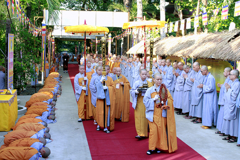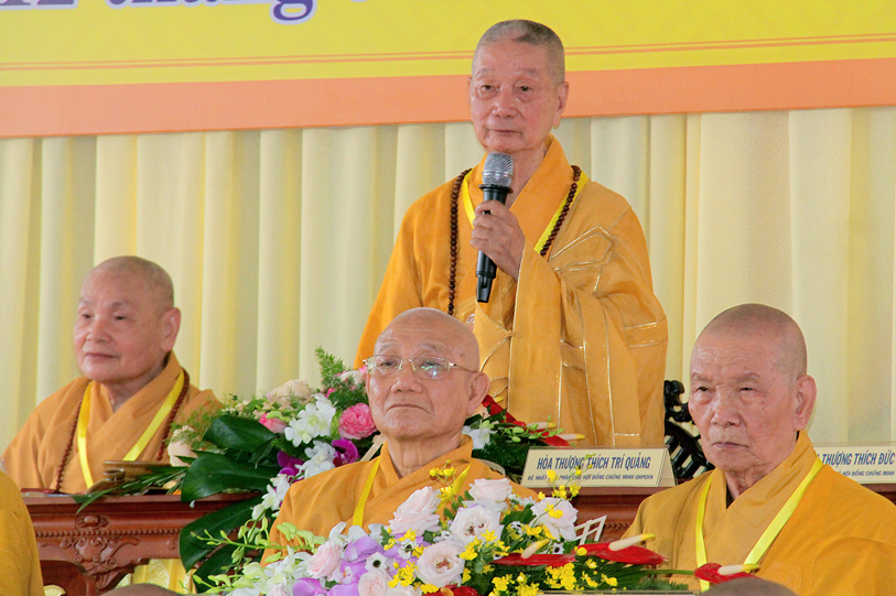 Ban đạo từ, Hòa thượng thượng Trí hạ Quảng – Đệ nhất Phó Pháp chủ kiêm Giám Luật HĐCM thượng Trí hạ Quảng đã nhắc nhở các giới tử ý thức được giá trị cao quý của người đệ tử Phật. Ngài cho rằng, làmđược thân người là điều rất khó, đã đạt được thân người, lại gặp Phật pháp thì dùng phước báo này để cần cầu chánh pháp, làm lợi lạc cho đạo pháp, cho muôn dân, xứng danh với Thích tử.