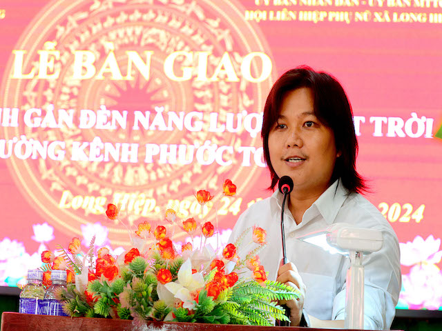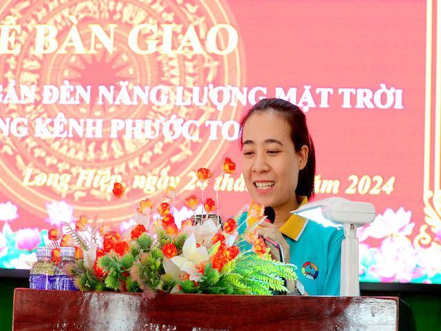 Mở đầu buổi bàn giao, Phật tử Thiện Đạt Đạo đại diện Hội Từ Thiện Thiền Tôn Phật Quang cho biết: được sự ngỏ lời của UBND xã Long Hiệp, Hội Từ Thiện Thiền Tôn Phật Quang mới có cơ hội lắp đặt hệ thống đèn đường chiếu sáng năng lượng mặt trời cho con đường dọc bờ Kinh ấp Phước Toàn.