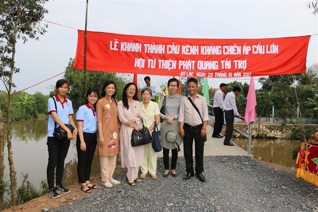 Cùng đi với Đoàn còn có đại diện nhà tài trợ là Cô Trần Mỹ Hà. Được biết tổng kinh phí xây dựng cây cầu là 360.000.000 đồng, trong đó Hội Từ Thiện Thiền Tôn Phật Quang hỗ trợ xây dựng công trình cầu với số tiền là 100.000.000 đồng.