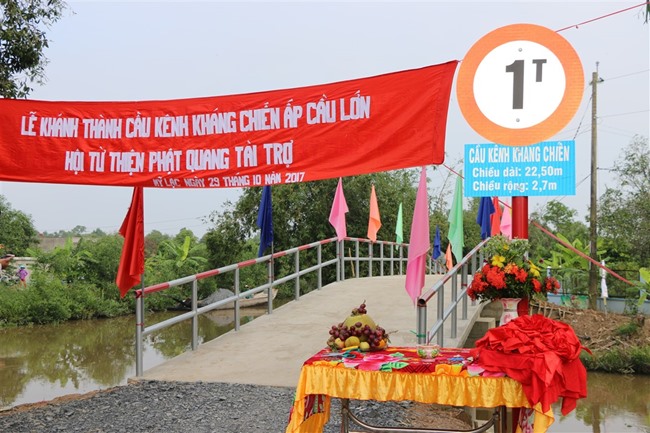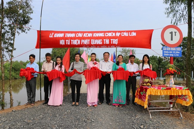 Sau cùng, mọi người cùng tham gia thắp hương cầu nguyện. Và Hội Từ Thiện Thiền Tôn Phật Quang, Lãnh đạo chính quyền cùng các nhà tài trợ khác đã cắt băng khánh thành, thông cầu và chính thức bàn giao công trình trên cho địa phương để đưa vào quản lý và phục vụ bà con nông dân.