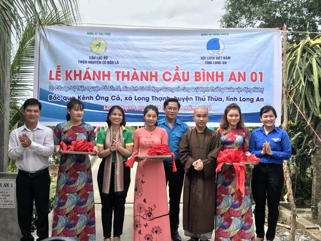 Lập thành tích chào mừng Đại hội Đảng các cấp, tiến tới Đại hội Đảng toàn quốc lần thứ XIII, Đại hội Đảng bộ tỉnh Long An lần thứ XI, nhiệm kỳ 2020-2025. Sáng ngày 28/06/2020, UBND xã Long Thạnh, huyện Thủ Thừa phối hợp với Tỉnh đoàn – Hội Liên hiệp thanh niên, CLB thiện nguyện Cỏ Bốn Lá và mạnh thường quân đã tổ chức Lễ khánh thành cầu Bình An 1, ngụ ấp 1 xã Long Thạnh, huyện Thủ Thừa, tỉnh Long An.