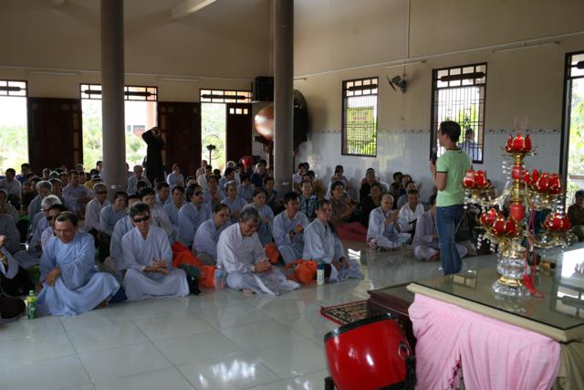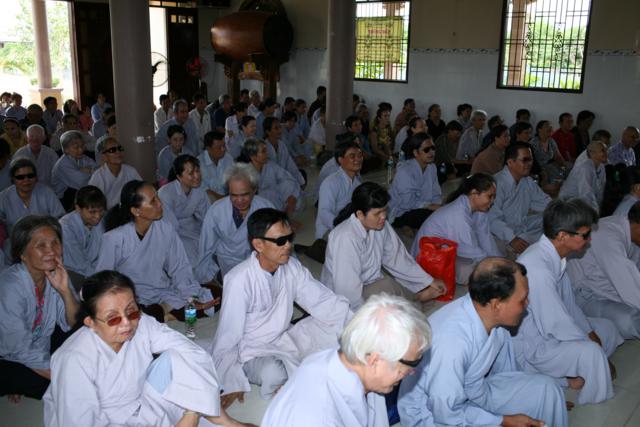 Gần 150 Phật Tử từ bệnh viện Ung bướu và Phật Tử Khiếm Thị các quận tại thành phố Hồ Chí Minh về chùa tu học trong một ngày. Một số bệnh nhân vì bệnh tật đau đớn nên trong khoá tu vẫn không tập trung và chuyên tâm được. Khi quan xác ta thấy rằng họ đã cố gắng vượt lên trên nổi đau bệnh tật để trở về chùa tu học và niệm Phật tinh chuyên. Có lẽ, khi hướng dẫn Phật tử khiếm thị và Ung thư tu học, ta nhận ra sự năng nổ, nhiệt tình, cố gắng và niềm tin vào Phật Pháp của họ. Trong giờ niệm Phật, cả đạo tràng đồng loạt vang lên danh hiệu đức Phật A Di Đà nghe trầm hùng và thiêng liêng. Trong hoàn cảnh bệnh tật ấy, thì đức Phật như là một điểm tựa tinh thần vững chắc, Giáo Pháp như là một chiếc phao để họ có thể ôm lấy trong giai đoạn bế tắc và đau khổ này. Khi trở về, Chùa đã có món quà nho nhỏ là chỉ có 50000 đồng Việt Nam thôi nhưng lòng vẫn cứ buồn buồn, vì nghĩ rằng, mình không có nhiều hơn nữa để có thể chia sẻ thêm cho họ, giúp họ có thể trang trải một phần khó khăn trong bệnh tật và cuộc sống, sao nghe lòng rung động và thương tâm cho những cuộc đời bất hạnh này. Sau đây là một số hình ảnh tu học: