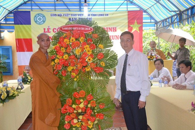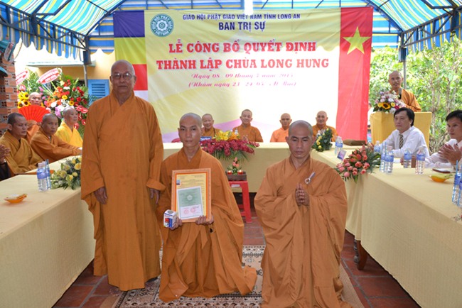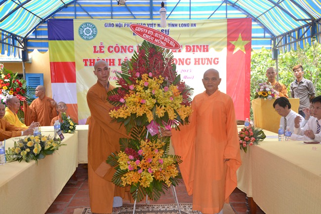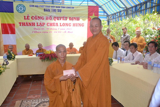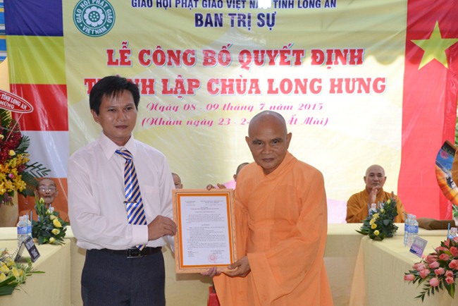 Tiếp nối chương trình Đại Đức Thích Lệ Trí: Ủy viên HĐTSTW GHPGVN , Chánh thư ký Ban Trị Sự GHPGVN tỉnh Long An thay mặt Chư tôn đức thường trực Ban trị sự tỉnh tuyên đọc quyết định bổ nhiệm trụ trì chùa Long Hưng.