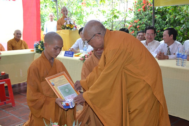 Đối trước Chư Tôn Đức chứng minh cùng đông đảo nhân dân Phật tử, Đại đức Thích Minh Nguyệt đã tiếp nhận Quyết định bổ nhiệm trụ trì chùa Long Hưng.