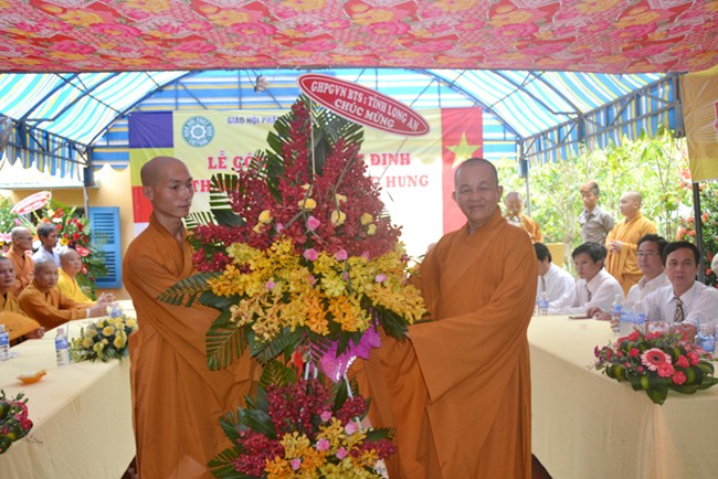 Quang lâm chứng minh tham dự buổi lễ có Chư tôn đức giáo phẩm: HT. Thích Minh Thiện: Ủy viên HĐTS trung ương, Phó Ban Hoằng Pháp trung ương GHPGVN, Trưởng Ban Trị Sự GHPGVN tỉnh Long An; HT. Thích Thiện Tâm: Phó Ban Trị Sự kiêm trưởng Ban kiểm soát GHPGVN tỉnh Long An; HT. Thích Trí Khai: Chứng minh Ban Trị Sự GHPGVN huyện Đức Hòa; HT. Thích Thiện Phúc: Trưởng Ban Trị Sự GHPGVN huyện Đức Hòa; HT. Thích Huệ Bạnh: Trưởng Ban Trị Sự GHPGVN huyện Cần Giuộc; HT. Thích Từ Thiện: Trưởng Ban Trị Sự GHPGVN huyện Đại đức Thích Lệ Trí: Ủy viên HĐTSTW, Chánh thư ký Ban trị sự GHPGVN tỉnh Long An; ĐĐ. Thích Thiện Danh: Phó thư ký kiêm trương Ban thông tin truyền thông GHPGVN tỉnh Long An; ĐĐ. Thích Hóa Minh: Trưởng Ban Trị Sự GHPGVN huyện Thủ Thừa; Ni Trưởng Thích Nữ Gương Liên: Phó Ban Trị Sự kiêm trương Ban kinh tế tài chánh tỉnh Long An; cùng Chư Tôn Đức Tăng Ni trụ trì các tự viện trong huyện Đức Hòa và hơn 500 Phật tử đồng về tham dự.