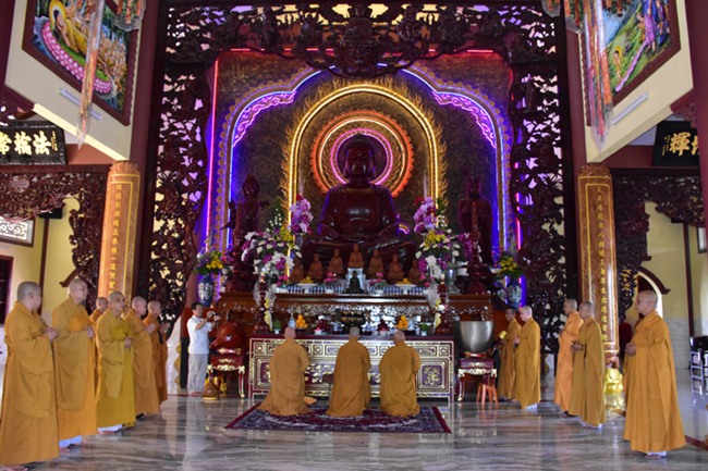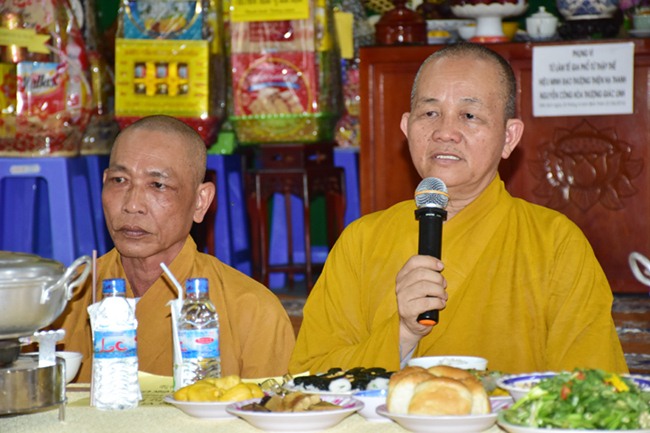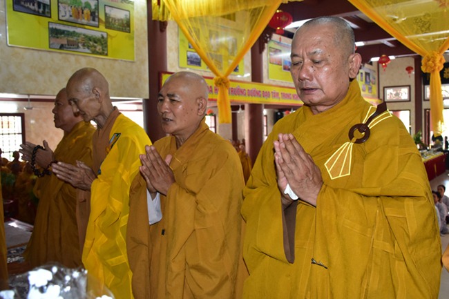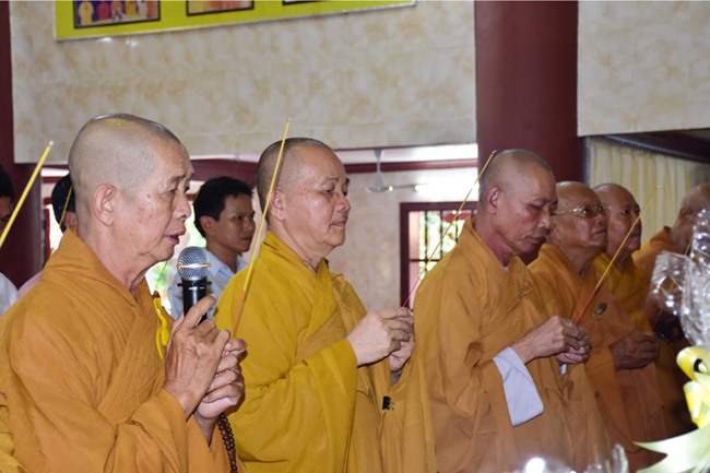 Quang lâm chứng minh tham dự có chư tôn đức giáo phẩm: HT. Thích Thiện Huệ – Chứng minh BTS GHPGVN tỉnh Long An; HT. Thích Minh Thiện – Ủy viên HĐTS, Phó ban Hoằng Pháp Trung ương GHPGVN, Trưởng BTS GHPGVN tỉnh Long An; HT. Thích Thiện Tâm – Phó BTS GHPGVN tỉnh Long An; HT. Thích Huệ Hồng- Phó BTS GHPGVN tỉnh Long An; cùng chư tôn Tăng Ni lãnh đạo Ban nghành BTS tỉnh, huyện, thị, thành phố và hơn 200 Tăng Ni, Phật tử trong và ngoài tỉnh đồng về tham dự.