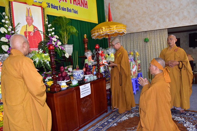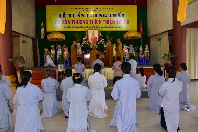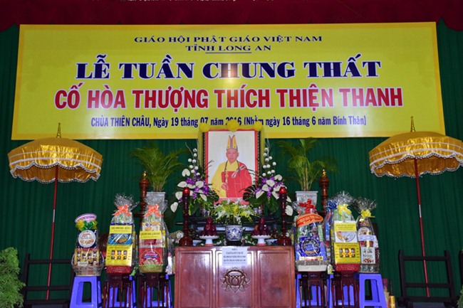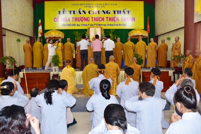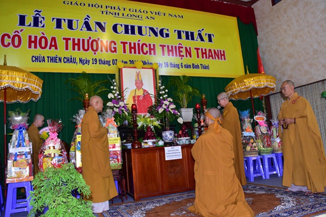 Tại buổi lễ, chư tôn giáo phẩm, quý vị Quan khánh lãnh đạo Chính Quyền đã trang nghiêm, thành kính niêm hương tưởng niệm, ôn lại công đức cuộc đời và sự nghiệp của cố HT thượng Thiện hạ Thanh trong quá trình hành đạo góp phần phát triển đạo pháp Phật giáo tỉnh Long An và cho Phật giáo Việt Nam nói chung.