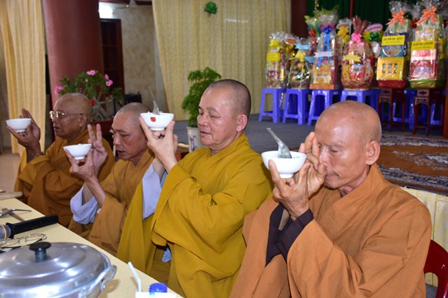 Môn đồ pháp quyến cũng đã thành kính tác bạch tri ân chư tôn giáo phẩm, Chư tôn đức Tăng Ni, Phật tử và tác bạch cúng dường trai Tăng. HT.Thích Minh Thiện, thay mặt chư tôn đức BTS GHPGVN tỉnh Long An, chư Tăng Ni ban đạo từ tại buổi lễ nhắc đến công hạnh Cố Hòa thượng thượng Thiện hạ Thanh.