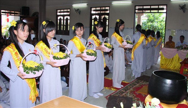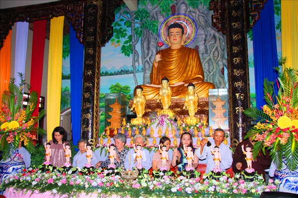 Tại buổi lễ, Đại đức Trụ Trì Chùa Khánh Ninh đã gởi lời chúc phúc đến toàn thể quý Phật tử nhân mùa Khánh đản của Đức Từ Phụ Thích Ca Mâu Ni được nhiều an lạc hạnh phúc. Sau lời chúc phúc, là khóa lễ nghi thức tắm Phật diễn ra trong không khi trang nghiêm long trọng và thiêng liêng. Lần lượt, những người con Phật được đứng trước kim thân Phật tổ sơ sinh tưới lên những giọt nước mát lên thân ngài và đồng tâm niệm, mỗi ngay hãy cố gắng gọt rữa tâm mình để trở thành con người thuần thiện và an lac.