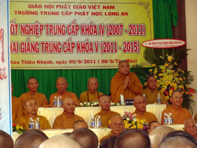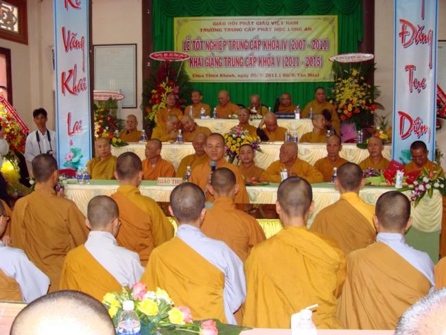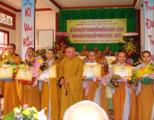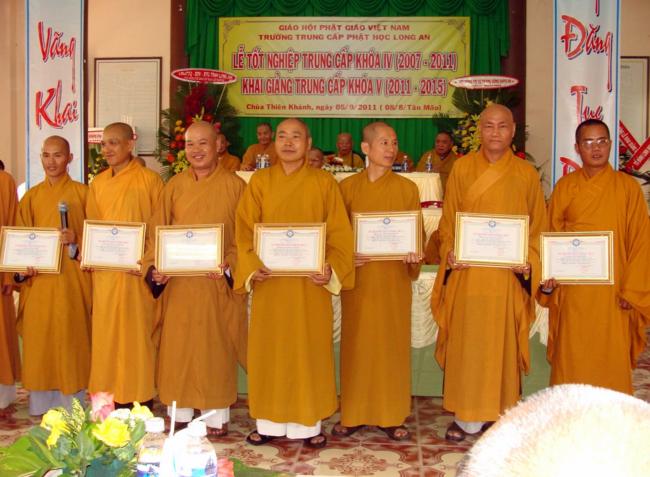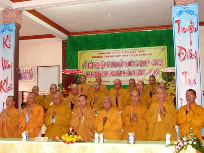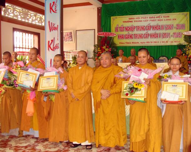 Được biết, Trường TCPH Long An khai giảng khóa IV (2007 – 2011) vào ngày 10/09/2007 (nhằm ngày 08/08/năm Đinh Hợi). Chương trình được đào tạo 4 năm theo quy chế nội trú đã thành tựu tốt đẹp như phương hướng đề ra. Trường có 2 cơ sở đào tạo: Cơ sở I đặt tại chùa Thiên Khánh – phường IV, thành phố Tân An, tỉnh Long An, có 34 Tăng sinh. Cơ sở II đặt tại chùa Thiên Phước – ấp Cầu, xã Khánh Hậu, phường Tân Khánh, thành phố Tân An, có 79 Ni sinh.