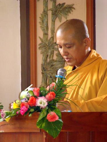 Tăng sinh Thích Trung Tánh – đại diện cho Tăng Ni sinh khóa IV – dâng lời cảm tạ tri ân thật cảm động “Trước khi rời xa mái trường thân yêu đã gắn bó với cuộc đời tu học của Tăng Ni 4 năm qua, chúng con không biết nói gì hơn chỉ xin thầm cảm ơn mảnh đất Long An đã nuôi dưỡng chúng con lớn lên về thể chất và trưởng thành hơn về tâm hồn. Xin đê đầu thành kính tri ân sâu sắc đến chư tôn đức trong BGH, BĐH 2 cơ sở đã không quản khó nhọc, nuôi dạy chúng con trong suốt thời gian qua.