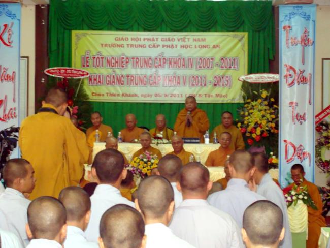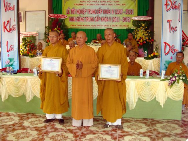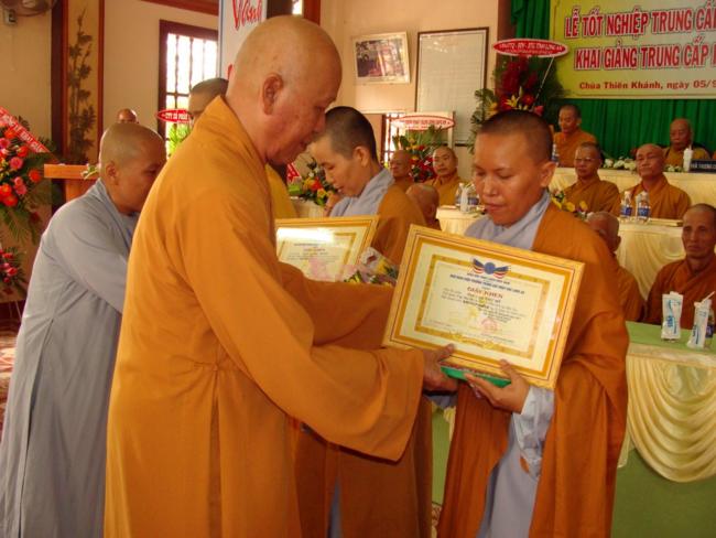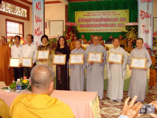 Tiếp theo, 113 Tăng Ni sinh khóa IV được trao bằng tốt nghiệp TCPH và BGH khen thưởng cho 3 Tăng Ni sinh có đạo hạnh tu học chấp hành nghiêm Giới luật, phát thưởng cho 13 Tăng Ni sinh đạt thành tích xuất sắc trong học tập. Nhân dịp này, trường cũng khai giảng khóa V, chào đón hơn 70 Tăng Ni sinh bước vào năm học mới 2011 – 2015.