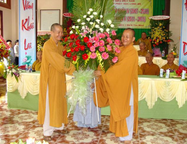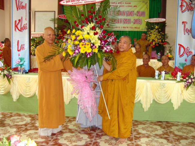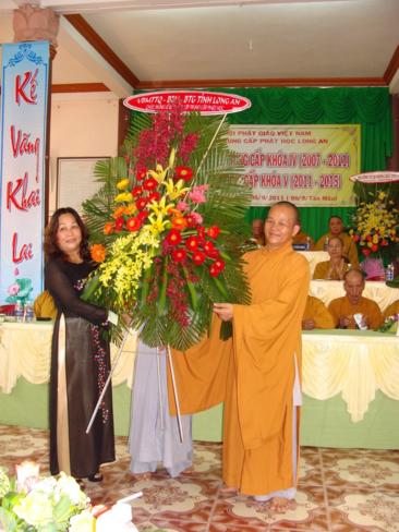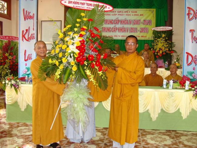 Trong buổi lễ, nhà trường cũng nhận những lẳng hoa chúc mừng của HĐTS TW GHPGVN, Ban Giáo Dục Tăng Ni TW GHPGVN; UBMTTQ, BDV, BTG tỉnh Long An, Hội cựu Tăng Ni sinh khóa II và khóa III Trường TCPH Long An, v.v… nhằm động viên Ban Giám Hiệu đẩy mạnh, nâng cao hơn nữa chương trình đào tạo Phật học.