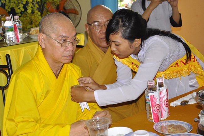 Sau phần nghe pháp, là chương trình Cài hoa hồng và dâng pháp ý. Chứng minh buổi lễ, Ban tổ chức được cung đón chư tôn đức:  Hoà thượng Thiện Huệ: Chứng minh Ban Trị sự Giáo hội Phật giáo tỉnh Long An; Hoà thượng Thiện Tâm: Phó ban Trị sự Giáo hội Phật giáo tỉnh Long An; Hoà thượng Quảng Ý: Trưởng ban Trị sự Giáo hội Phật giáo liên huyện Tân Thạnh, Mộc Hoá, Vĩnh Hưng; Hoà thượng Bửu Ứng: Trưởng ban Trị sự Giáo hội Phật giáo huyện Cần Đước; Cùng hơn 100 quý chư tôn đức Tăng Ni và hơn 500 Phật tử tham dự lễ hội Vu Lan.