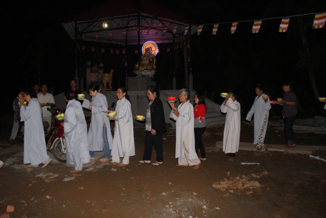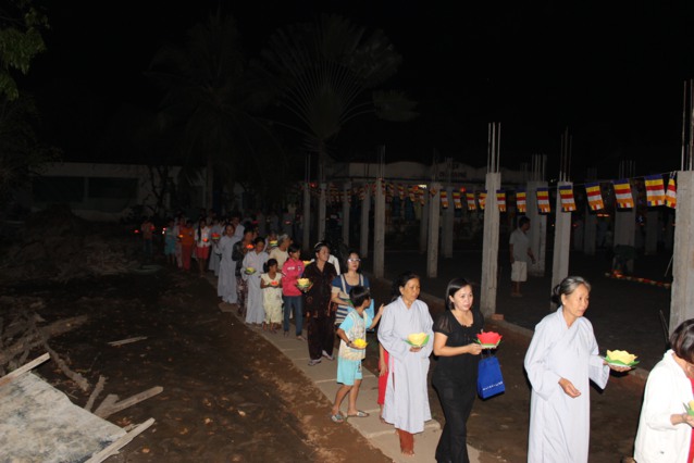 Tiếp theo là đảnh lễ 48 lời nguyện của ngài, sau đó là phần đi kinh hành nhiễu quanh Chánh Điện đang trong quá trình xây dựng.
